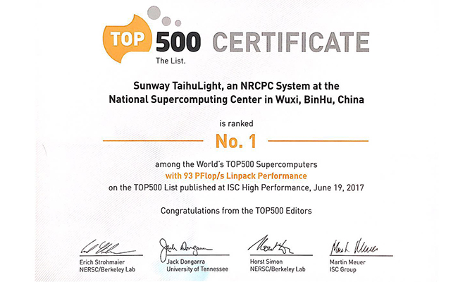 2017.06清华运营的神威·太湖之光超级计算机蝉联世界超算冠军