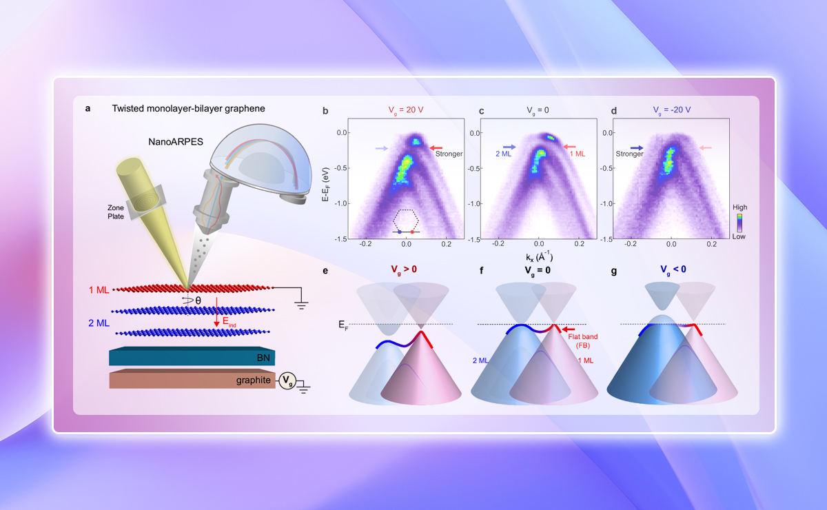 华体会娱乐平台物理系周树云研究组继近期发文报道转角双层石墨烯的平带电子结构随转角的演化进展之后,又进一步将平带研究拓展到由单层石墨烯和双层石墨烯堆叠形成的转角单-双层石墨烯,并且通过施加原位栅极电压调控的方法,首次揭示了转角单-双层石墨烯中,外...