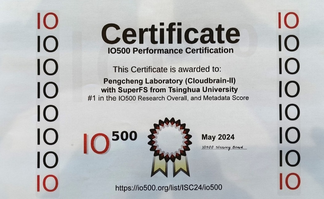 2024.05计算机系存储实验室蝉联超算存储500强(IO500)榜单全球第一
