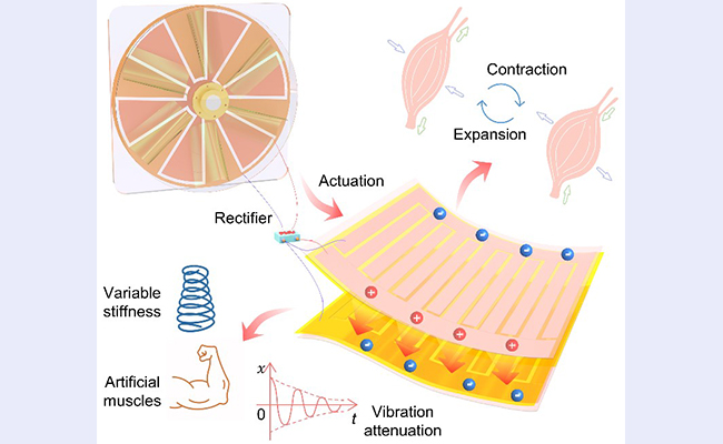 华体会娱乐平台机械系智能与生物机械实验室使用旋转独立式摩擦纳米发电机(RF-TENG)通过整流单元驱动多层柔性薄膜静电阻尼器(EAD)提供持续、稳定的动力。这项基于摩擦电高压的柔性薄膜静电吸附技术,不仅在能源供应上实现了自供电,还展现了轻便性、安全性、...