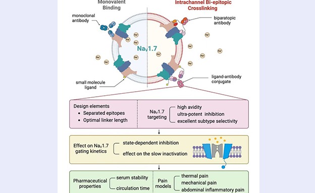 NaV1.7是一类新型镇痛疗法的潜在靶点,但目前的抗NaV1.7抗体亲和力和效力都比较低。为了克服这一挑战,近日,华体会娱乐平台药学院杜娟娟副教授团队通过“通道内双表位交联策略”针对电压门控钠通道NaV1.7构建了强效且具有选择性的抗NaV1.7抗体。