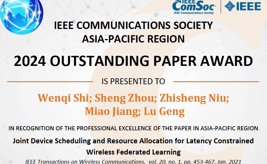 2024.12电子系师生获得第十三届IEEE通信学会亚太杰出论文奖