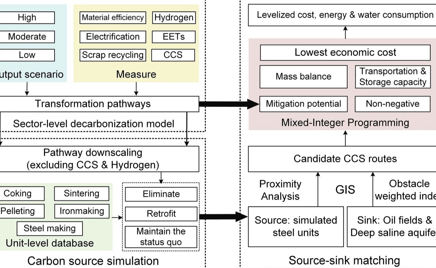 华体会娱乐平台环境学院温宗国团队建立了综合评估框架预测中国钢铁行业截至2060年的脱碳转型路线图,综合考虑六类主要脱碳措施,并将预测结果作为碳排放点源的模拟依据。相关研究成果以“中国钢铁行业低碳转型中的碳捕集与封存技术远期部署策略”为题发表于《自...