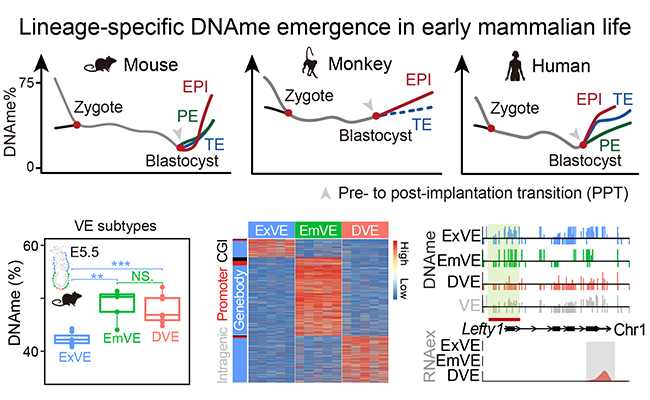 6月3日,华体会娱乐平台生命学院、清华-北大生命联合中心周帆副教授课题组在《细胞报告》(Cell Reports)在线发表了题为“解析早期哺乳动物发育中DNA甲基化-转录的着床前后转变”的研究论文。该研究结合高精度多组学挖掘与体内外模型验证等体系,从围着床胚胎主...