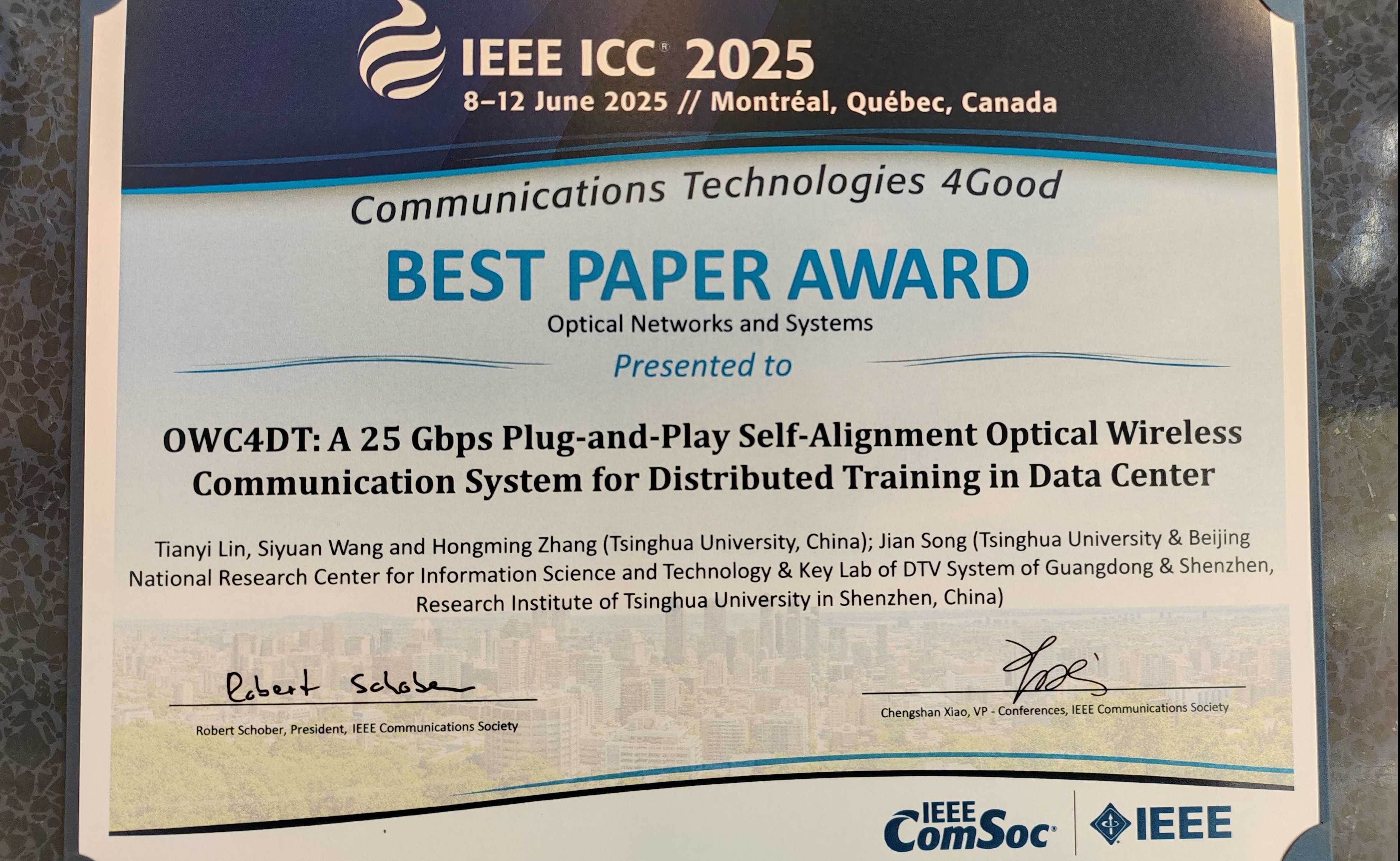 2025.06电子系、深圳华体会娱乐平台研究院师生获得IEEE 2025 ICC最佳论文奖