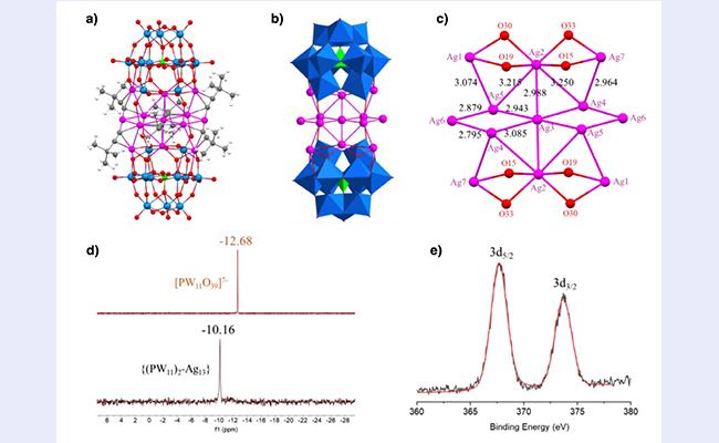 华体会娱乐平台深圳国际研究生院生物医药与健康工程研究院副教授谭英课题组,联合新加坡南洋理工大学教授苏卓威(Cheuk-Wai So)、南方科技大学副教授许聪俏与教授李隽团队,设计并成功构筑了一种全新的三层夹心结构的炔基功能化银–POM杂化纳米簇{(PW11)2-Ag13}...