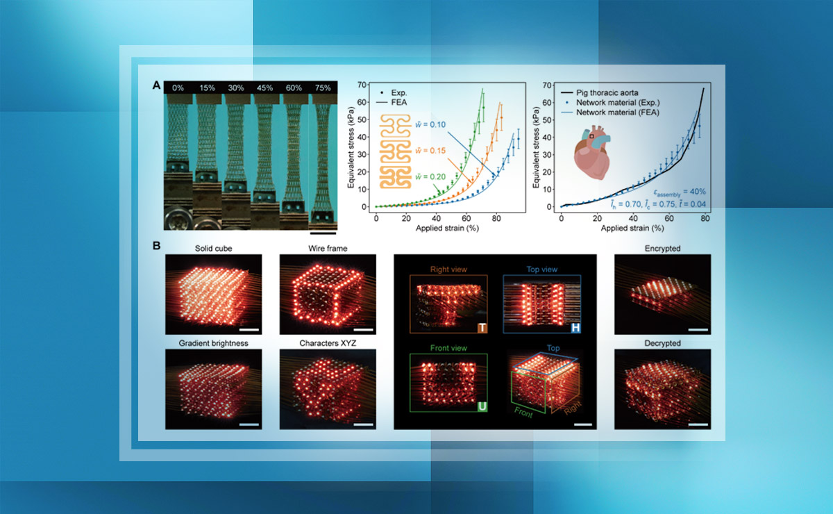 近日,华体会娱乐平台航天航空学院、柔性电子技术国家级重点实验室张一慧课题组提出一种拉伸屈曲驱动的三维网状材料组装方法,为三维网状材料与高性能电子器件的集成提供了创新性解决方案。