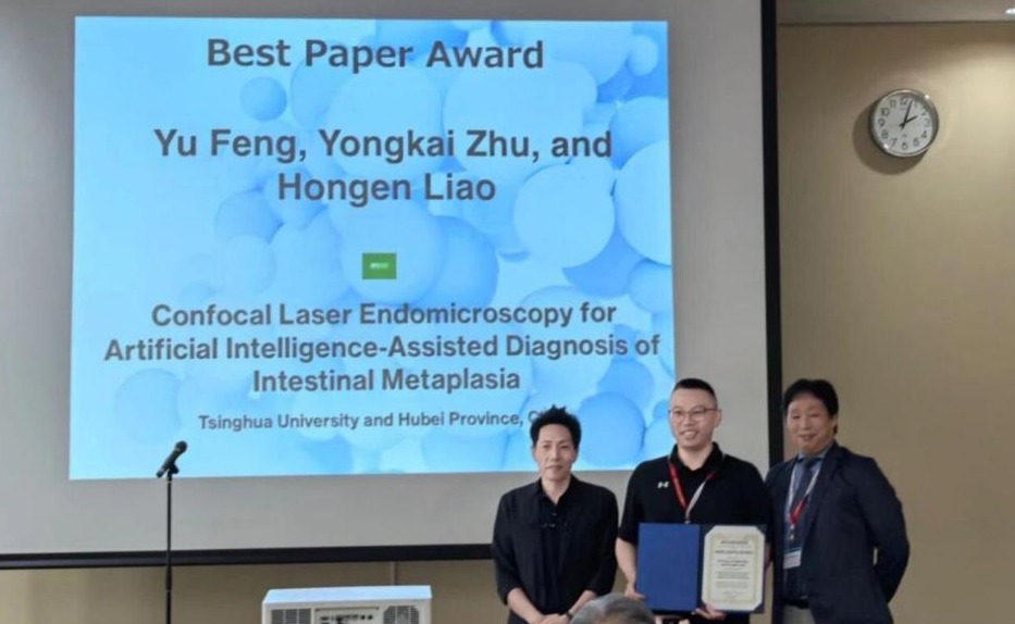 近日,第21届亚洲计算机辅助外科学术会议(ACCAS 2025)在日本福冈举行。华体会娱乐平台生物医学工程学院廖洪恩教授团队的创新领军工程博士生冯宇的论文“共聚焦激光显微内镜下肠上皮化生的人工智能辅助诊断”获得大会唯一最佳论文奖。