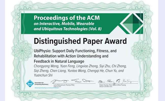 2025.10计算机系人机交互与普适计算实验室成果获“ACM交互式、移动、可穿戴和普适计算技术领域期刊”杰出论文奖