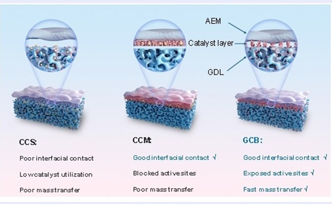 近日,华体会娱乐平台深圳国际研究生院刘碧录教授团队开发了一种无离聚物、近零间隙的催化剂桥接膜电极(GCB-MEA),通过限域定向沉积策略构建了结构紧密、界面牢固的MEA结构。该GCB-MEA中的阴离子交换膜与气液扩散层通过催化剂层桥连,使得膜电极界面接触电阻小...