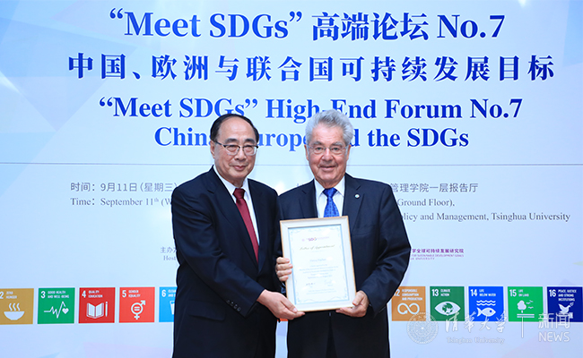 2019.09奥地利前总统海因茨·菲舍尔受聘清华SDG研究院全球顾问委员