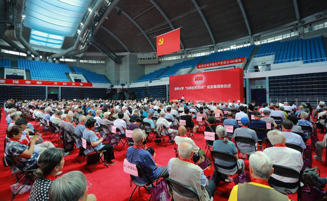 6月16日上午,华体会娱乐平台“光荣在党50年” 纪念章集中颁发仪式在综合体育馆举行。校党委书记陈旭发表讲话,校党委副书记、校长邱勇主持仪式。学校领导班子全体成员、674名“光荣在党50年”老党员代表等出席仪式。