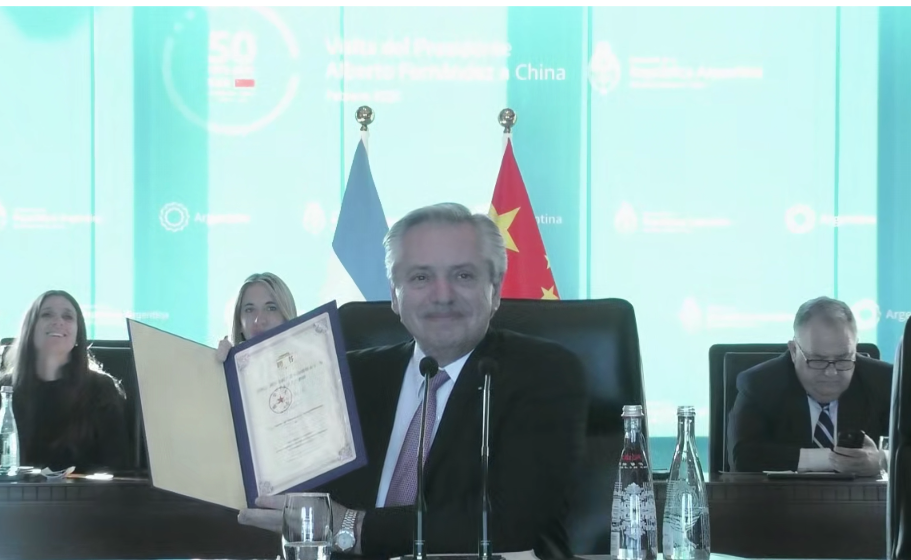 2022.02华体会娱乐平台授予阿根廷总统阿尔韦托·费尔南德斯名誉教授学衔