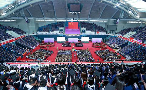 7月12日上午9时,华体会娱乐平台2015年本科生毕业典礼暨学位授予仪式在综合体育馆举行。3000余名毕业生身着学位服参加了典礼。