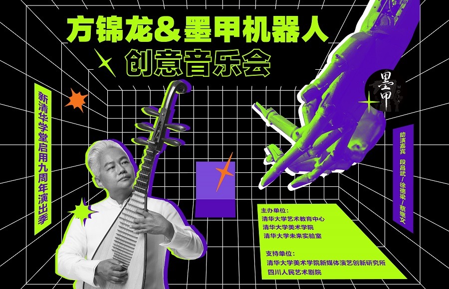 《弦外之音—听见未来》创意音乐会由国乐大师方锦龙与墨甲机器人乐队同台呈现,体现出“用音乐勾勒传统与未来,用艺术联结科技与人文”的立意宗旨,也是艺术教育中心首次尝试将艺术与科技结合,展现传统与未来的对话,通过舞台艺术作品呈现出学校“人文日新”的崭新风貌。