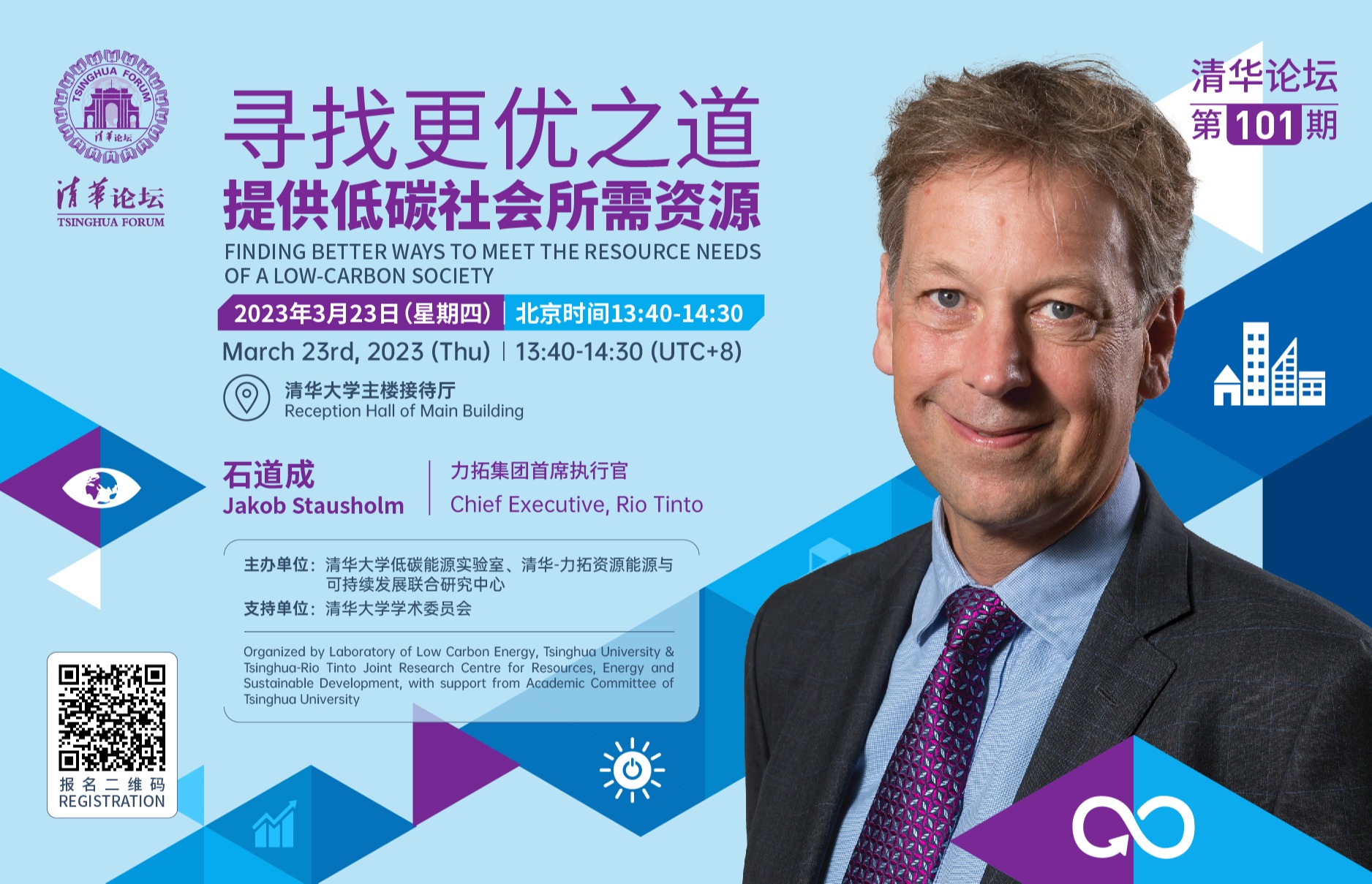 石道成将分享他关于如何合作应对全球气候变化这一紧迫挑战并携手减碳的观点,介绍力拓集团的核心运营战略以及旗舰采矿项目,并阐述力拓集团在支持中国的现代化进程和低碳转型中所发挥的作用。