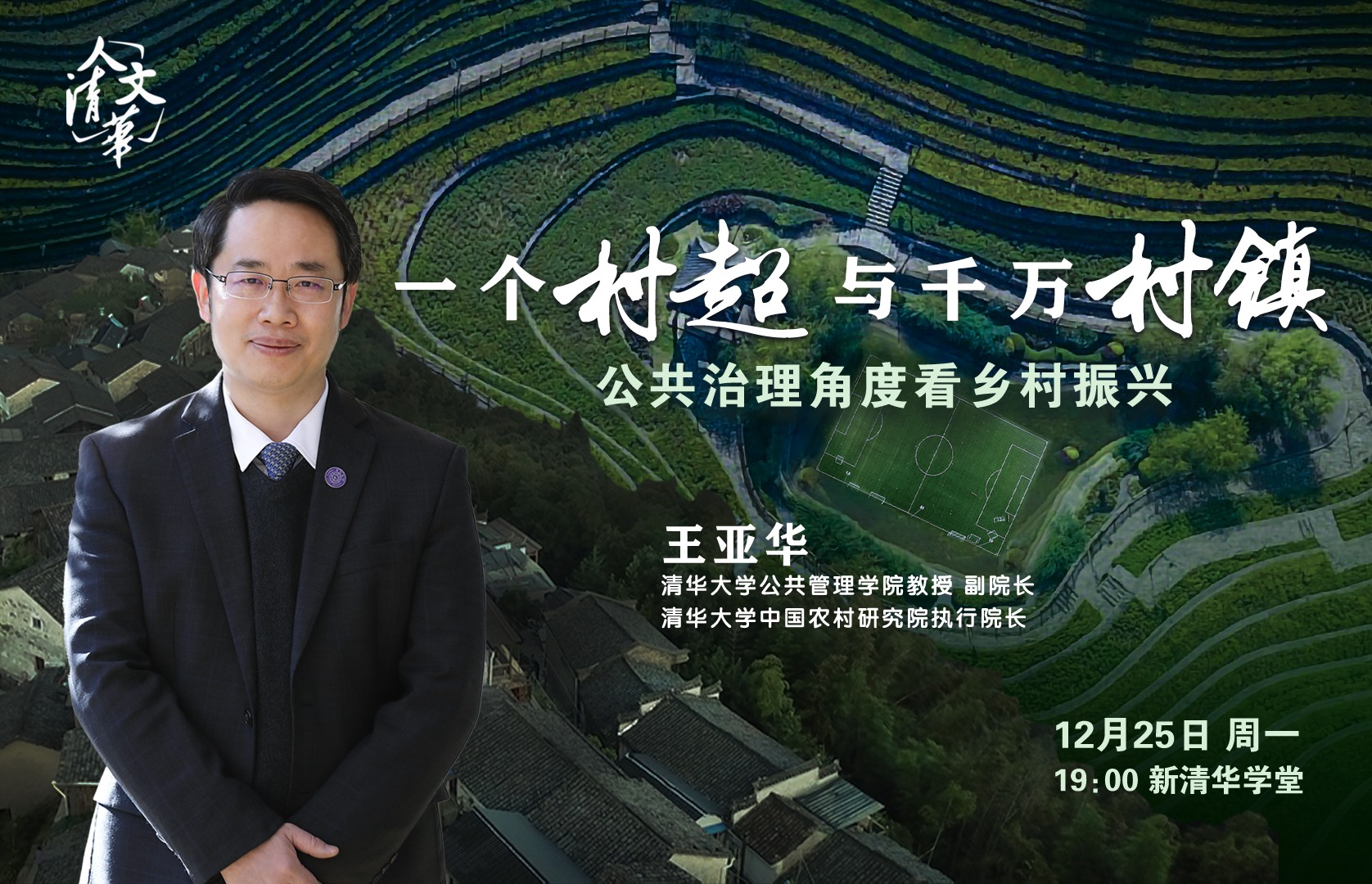 12月25日19:00人文清华讲坛,公共治理专家、华体会娱乐平台公共管理学院副院长、华体会娱乐平台中国农村研究院执行院长王亚华教授演讲,《一个村超与千万村镇》,从公共治理角度解析中国农村问题。